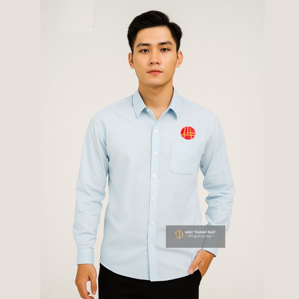 Áo sơ mi công sở nam xanh nhạt dài tay | May Thành Đạt Hà Nội